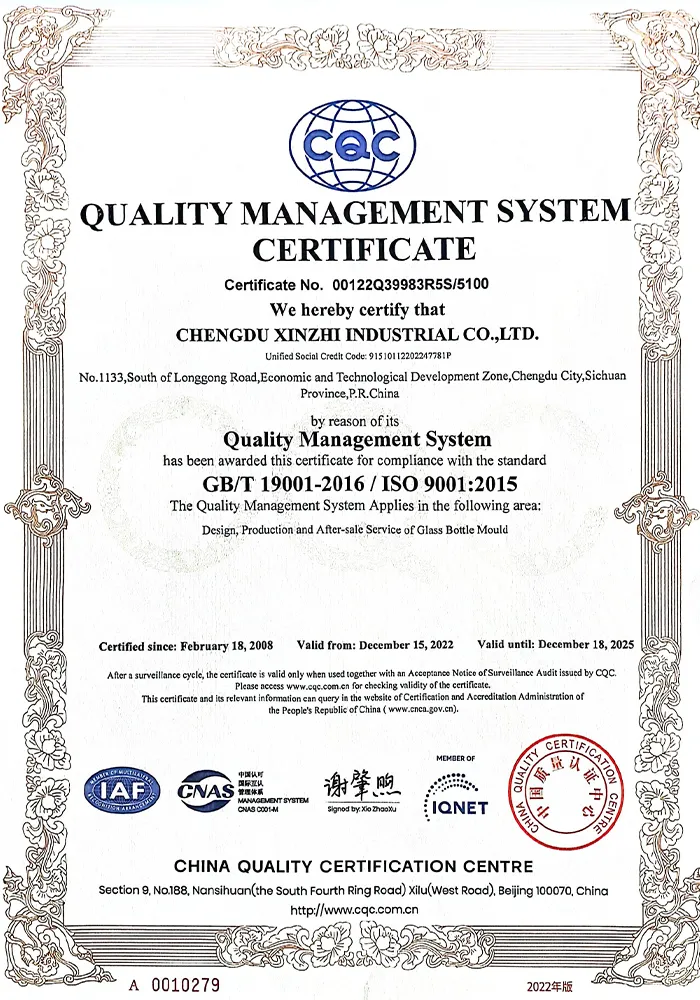 ООО «Чэнду Синьчжи Индастриз» основано в 1996 году и расположено по адресу: г. Чэнду, зона экономического развития, ул. Лунгун Наньлу, д. 1133. Это частное предприятие, специализирующееся на проектировании, производстве и продаже различных пресс-форм для стеклянных изделий.